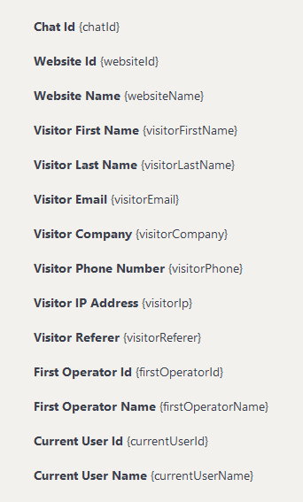 URL: This the custom built URL you get from your end. The URL comes from a page where you are collecting information gathered from your customers. To replace values represented in your URL with data Pure Chat collects in a chat, use our